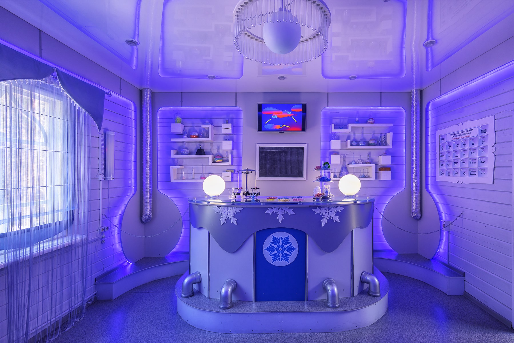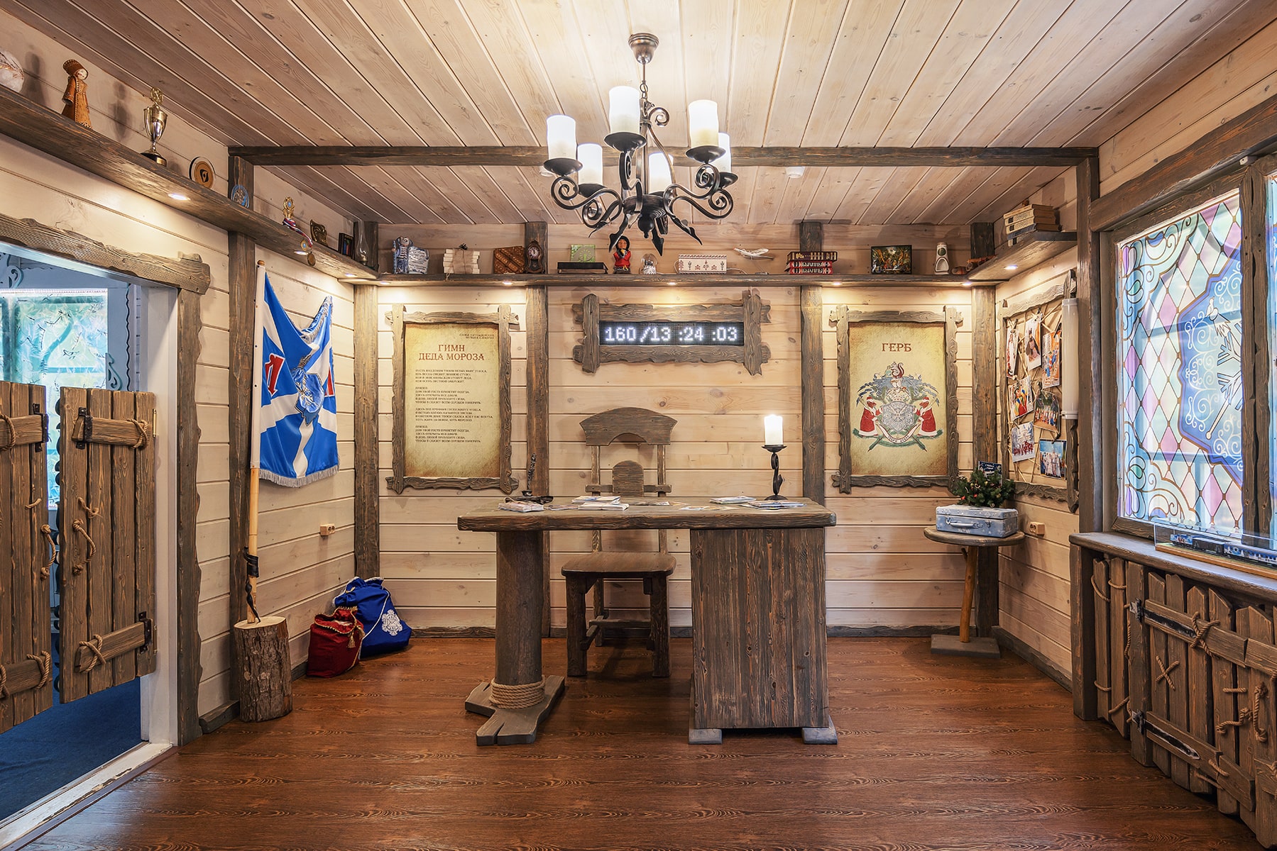 Помощники Деда Мороза украшают вотчину праздничными огоньками, украшают новогоднюю Елку. На территории вотчины помощницы Деда Мороза предлагают угощения для путешественников, различные напитки, закуски и горячее (за дополнительную плату).
